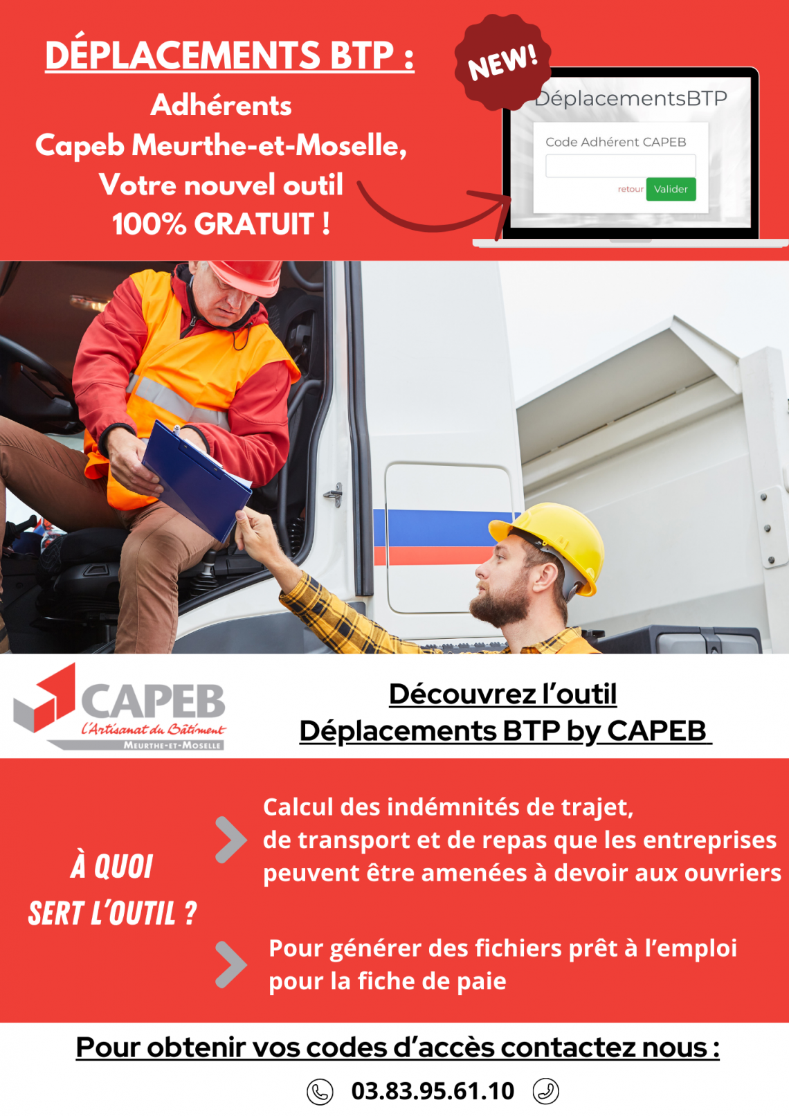 Pour obtenir votre code d'accès, contactez Adeline à la CAPEB Meurthe-et-Moselle : 03.83.95.61.10