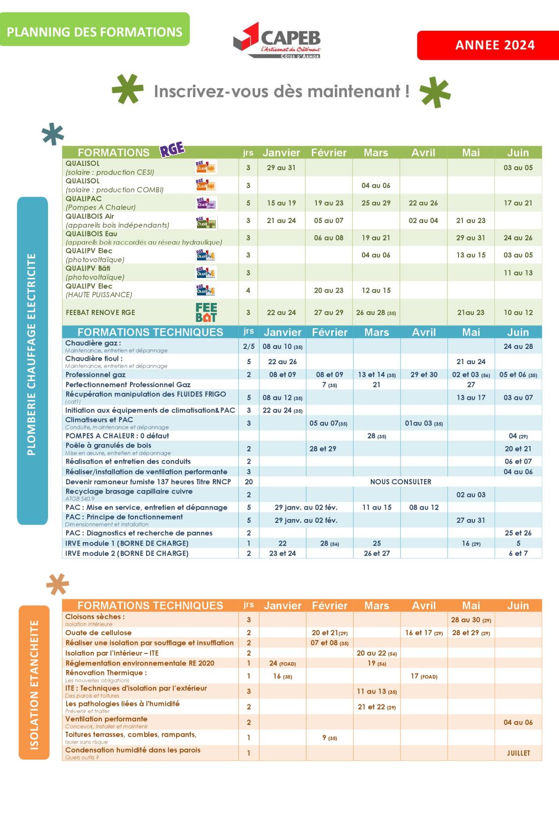 2023-12-20 13:59:53 PLANNING DES FORMATIONS 1ER SEMESTRE 2024 Téléchargez ici le planning des formations 2024. Cliquez ici pour vous inscrire.