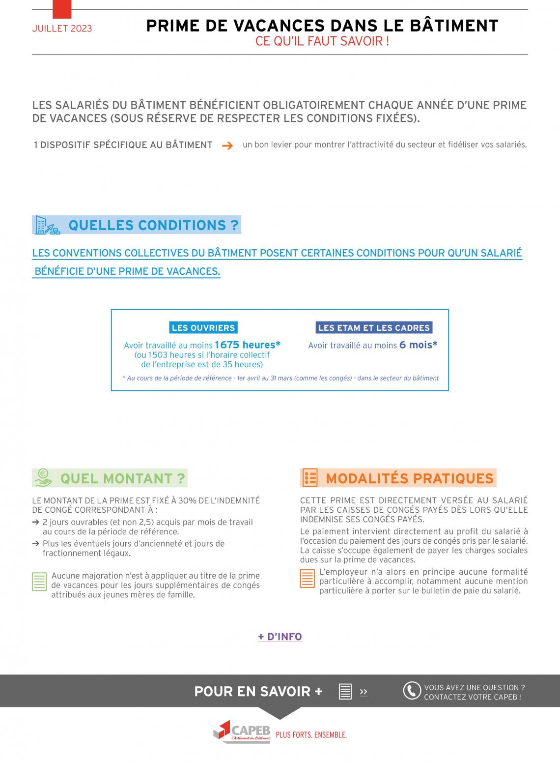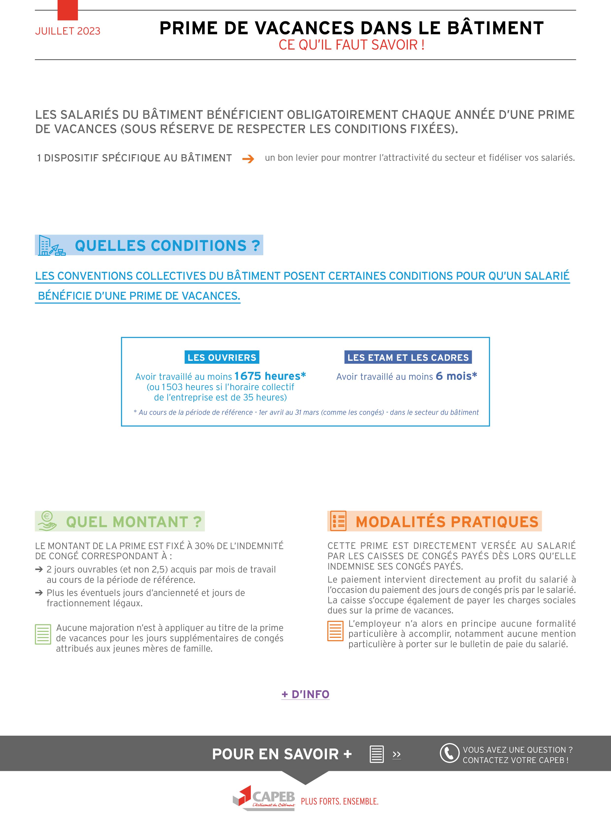 PRIME DE VACANCES DANS LE BÂTIMENT