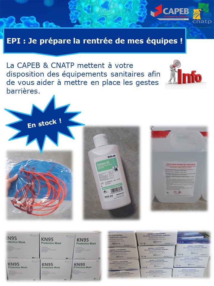 Afin de protéger vos équipes, la CAPEB & CNATP mettent à votre disposition des EPI sanitaires. Pour commander, rien de plus silmple.