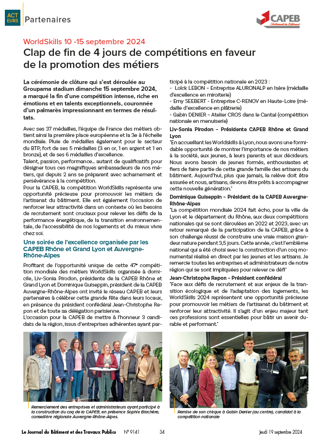 Retour sur la soirée "Worldskills" à la CAPEB RHONE ET GRAND LYON