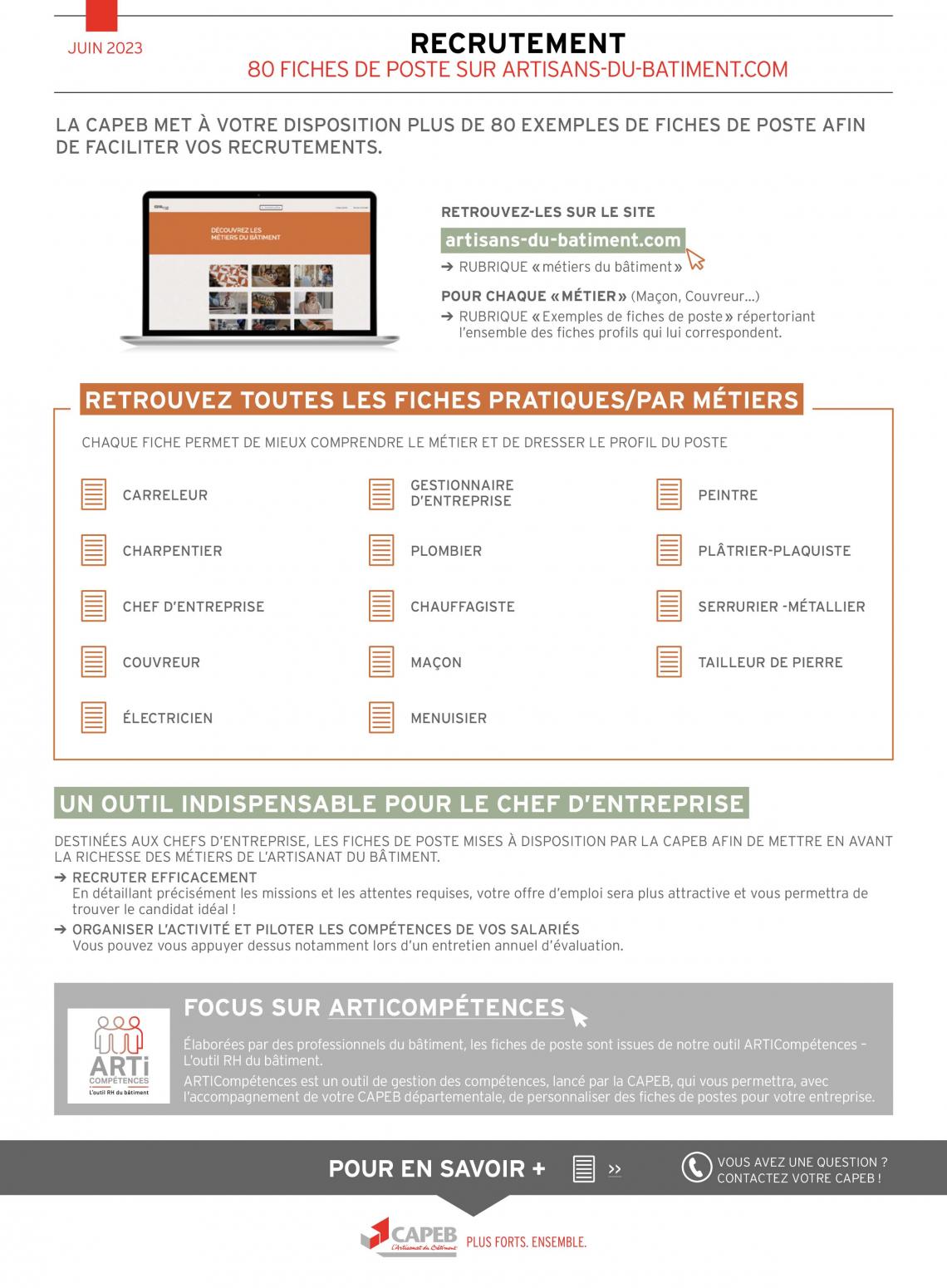 RECRUTEMENT 80 FICHES DE POSTE SUR ARTISANS-DU-BATIMENT.COM