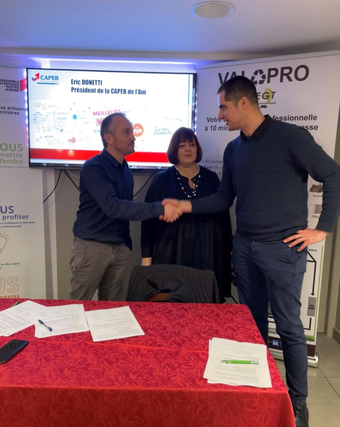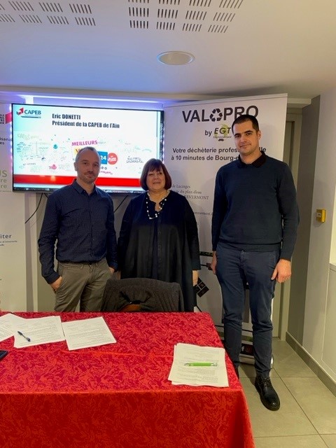 Pour répondre à la REP Bâtiment et trouver une solution pour nos entreprises, nous avons décidé de mettre en place un partenariat avec la société EGT Environnement pour la reprise des déchets sans frais du BTP prévus dans le cadre de la REP notamment avec l'ouverture de la déchèterie professionnelle Valopro mais également pour que nos adhérents bénéficient de prix négocié sur les autres déchets ou solution de location de bennes.