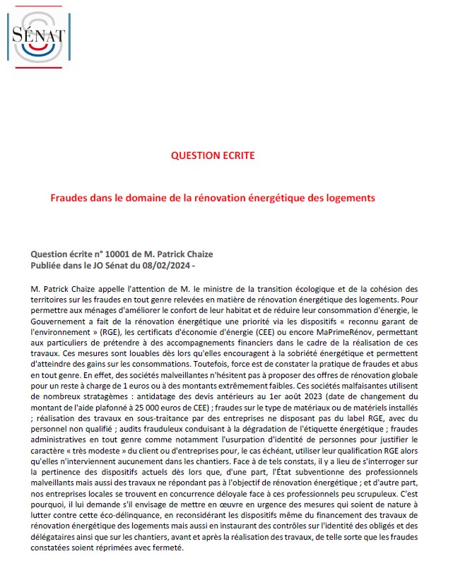 Le sénateur a été très à l’écoute. Nous allons en premier travailler conjointement à la rédaction d’une question écrite au gouvernement plus spécifiquement sur le sujet des fraudes et usurpations d’identité des entreprises RGE.