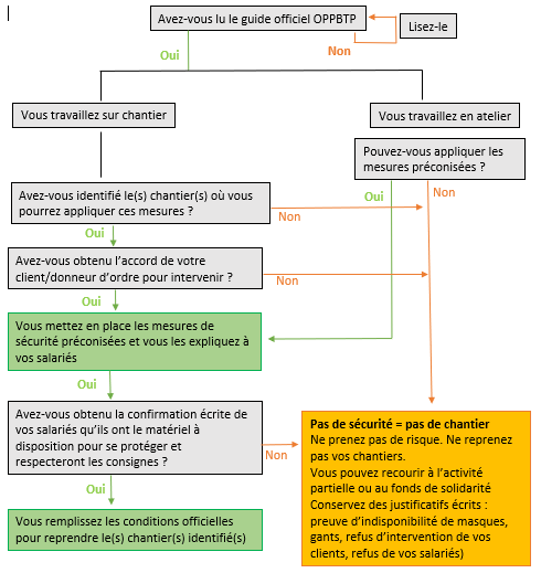 Mais évidemment vous restez libre de vos choix, à la condition de respecter la règle d’or suivante : ne pas reprendre un chantier s’il ne vous est pas possible de mettre en œuvre les mesures de sécurité préconisées dans ce guide.