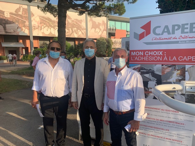 Sylvain Locci, Président CAPEB 06 accompagné par Louis Nègre, Maire de Cagnes-sur-Mer, et Patrick Tosello, administrateur CAPEB 06 et 1er adjoint au maire d'Amirat