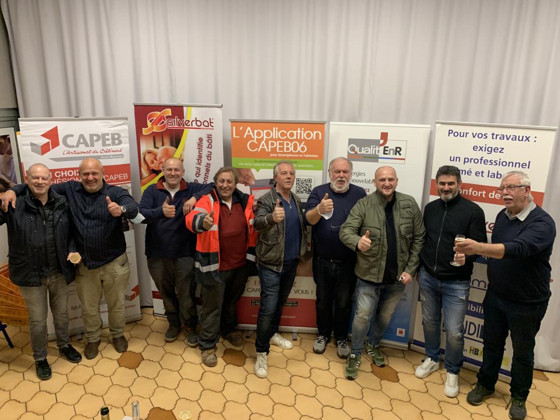 Plaisir de se retrouver pour trinquer et échanger sur nos métiers respectifs et sur le soutien de la CAPEB 06. Notons la participation des Présidents de Section venus se présenter aux nouveaux adhérents : Daniel SCHULTZ Pdt des Peintres, Franck CAVERZAGHI Pdt des Maçons, Raoul Robba Pdt des Électriciens, Georges BISSON Pdt des Plombiers.Un grand merci à tous les participants pour leur présence.