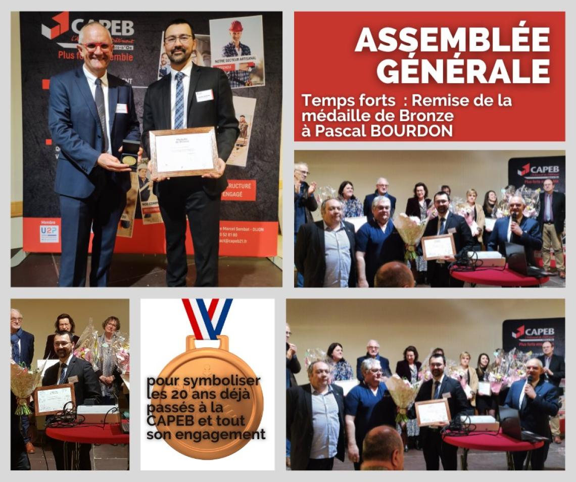 Un moment fort de cette assemblée générale fut également la remise de la médaille de Bronze à notre secrétaire général Pascal BOURDON pour ses 20 ans d'engagement au sein de notre syndicat.