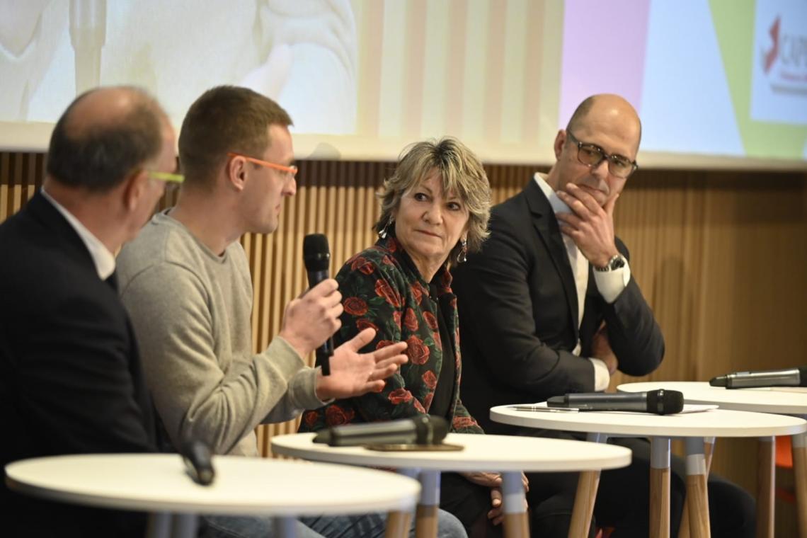 David et Baptiste Morales, chefs d’une entreprise familiale de plâtrerie, et Laure Vial, cheffe d’une entreprise de plomberie, ont évoqué l’impact du numérique sur leur activité. Le numérique permet un temps précieux pour l’entreprise, de coordonner les équipes, d’être plus réactif vis-à-vis des clients, de leur permettre de visualiser les travaux à venir… Qu’il s’agisse d’outils ou du BIM.