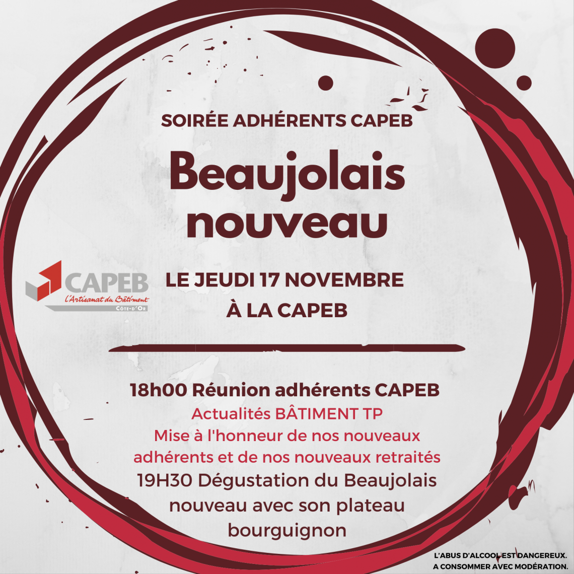 Le Président Jean-Sébastien NONQUE, maçon à Aiserey et le conseil d'administration de la CAPEB Côte d'Or ont le plaisir de vous inviter à une réunion le jeudi 17 novembre à la CAPEB 21.