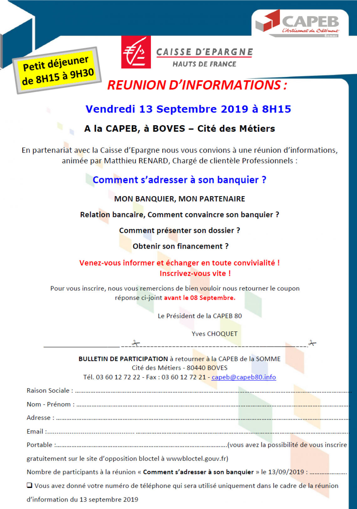 REUNION D’INFORMATIONS : COMMENT S’ADRESSER A SON BANQUIER AVEC LA CAISSE D’EPARGNE