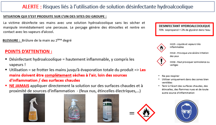 RISQUE D’INCENDIE et/ou DE BRULURES DANS L’UTILISATION DE GEL/SOLUTION HYDRO ALCOOLIQUE SUR CHANTIER/ATELIER