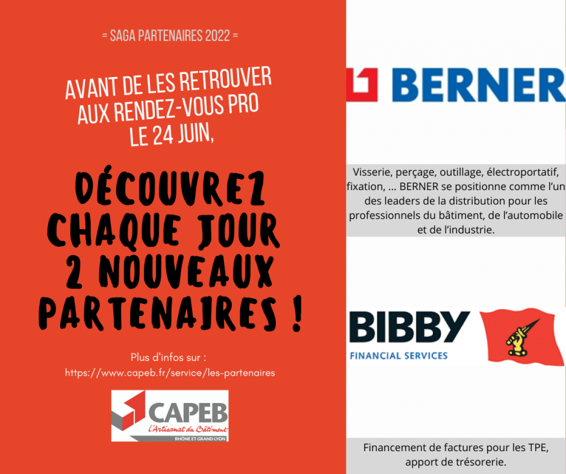 Avant de retrouver tous nos partenaires lors des Rendez-vous Pro du 24 juin 2022 de la CAPEB RHONE ET GRAND LYON, retrouvez chaque jour la présentation de 2 nouveaux partenaires !