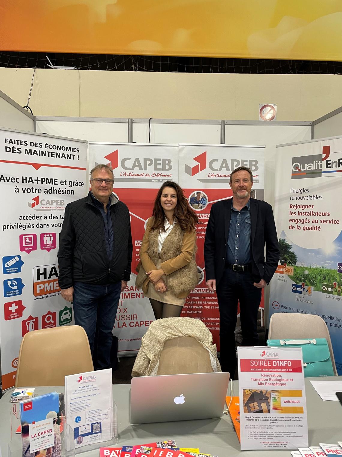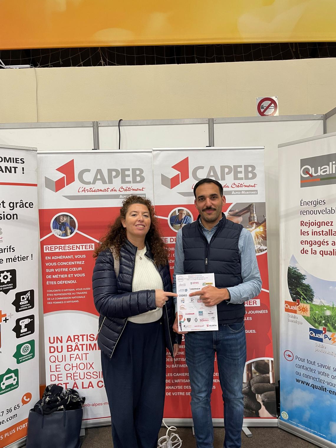 Caroline CIAIS (chargée de formation) et Laura PROVILLE (chargée de développement) ont animé le stand de la CAPEB 06 aux côtés du Président Franck CAVERZAGHI et du Vice-Président Marc THEUVENEY.