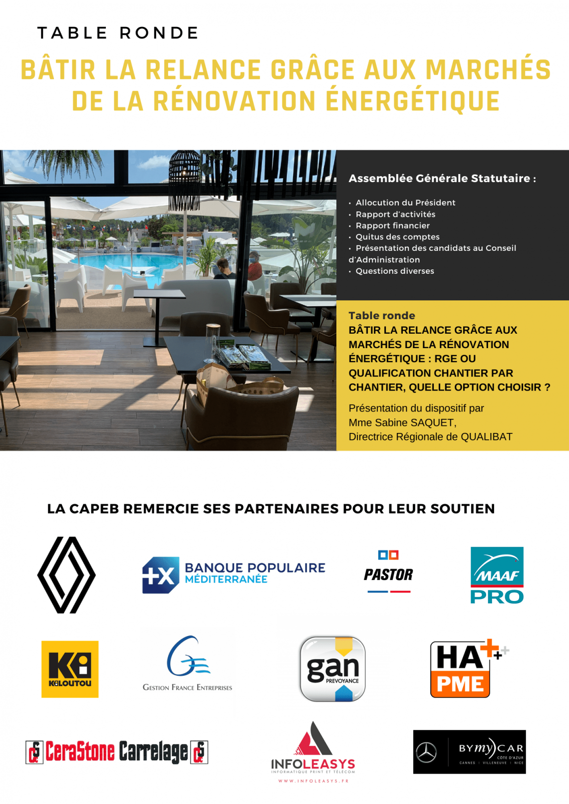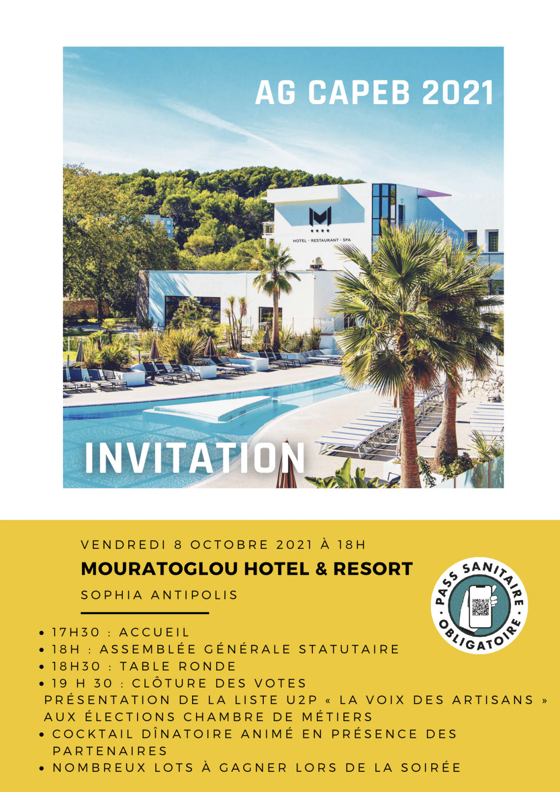 2021-09-21 15:01:03 Save the date : Assemblée générale CAPEB 06 vendredi 8 octobre au Mouratoglou Hôtel & Resort Inscrivez-vous dès à présent ici