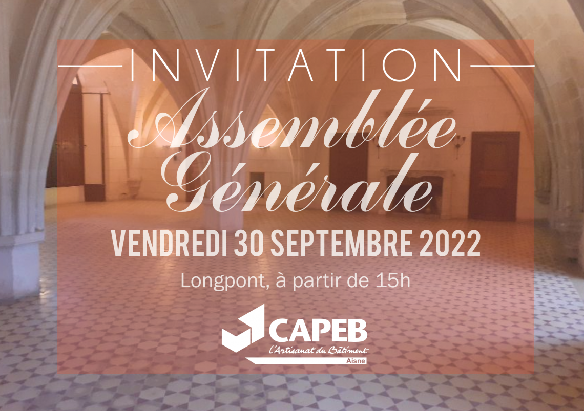 Le 30 septembre 2022, à 15h, aura lieu l'Assemblée générale de la CAPEB Aisne !