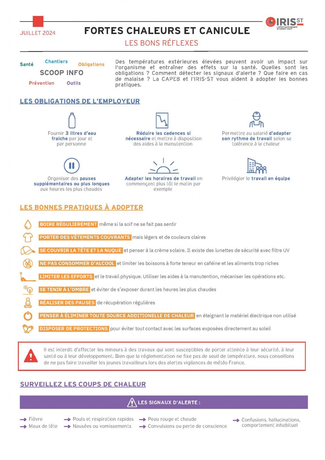 Dans ce SCOOP INFO, vous trouverez toutes les obligations de l'employeur lors des fortes chaleurs et canicule mais aussi les bonnes pratiques à adopter, comment surveiller les coups de chaleur, comment réagir auprès d'une victime.
