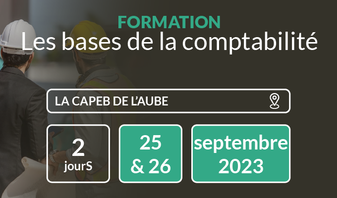 Pour maîtriser les bases de la comptabilité, la CAPEB & CNATP de l’Aube vous invite donc à participer à notre session de formation les 25 et 26 septembre 2023. Tarif : 392€.