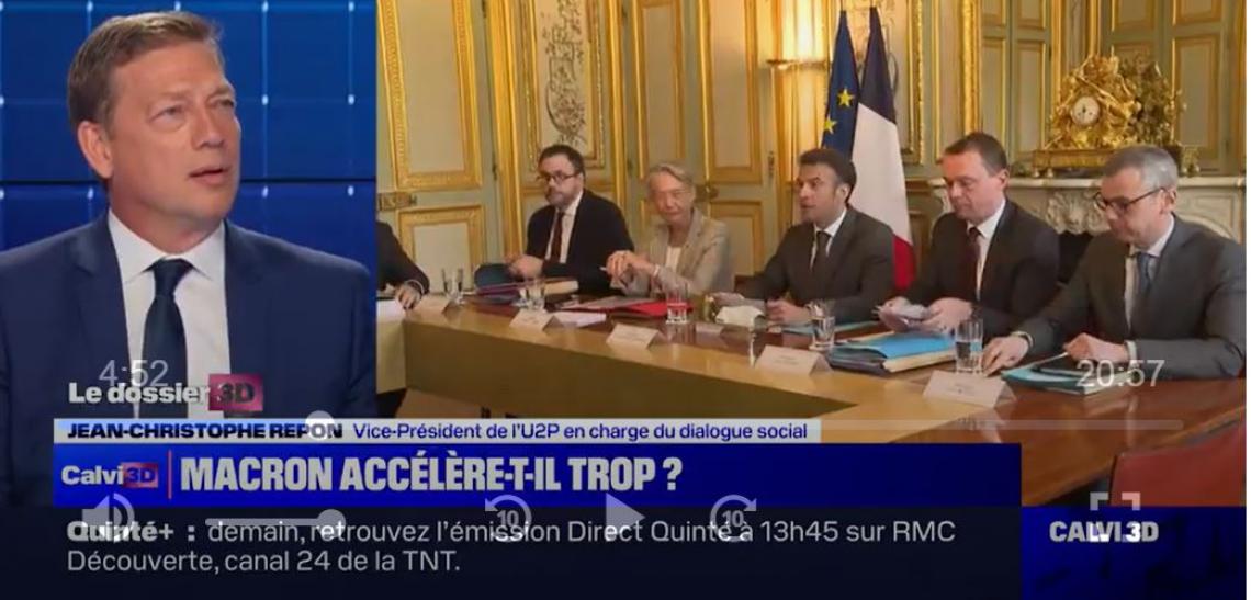 A la sortie de cet échange, Jean-Christophe Repon a été invité sur les plateaux télé de France Info, BFM Business et de BFM Calvi 3D où il partageait l’antenne avec le politologue Roland Cayrol, l’éditorialiste politique Amandine Atalaya, le secrétaire général de l’UNSA Laurent Escure et Pierre Faracci expert en relations sociales.