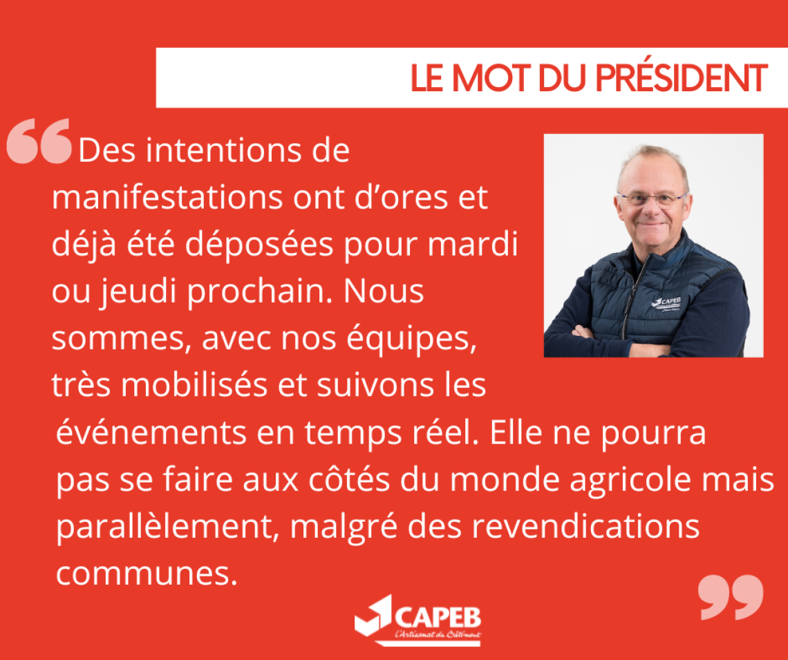 La mobilisation du monde agricole entraîne pour nous, élus syndicaux CNATP et CAPEB de toute la France, une forte réaction.