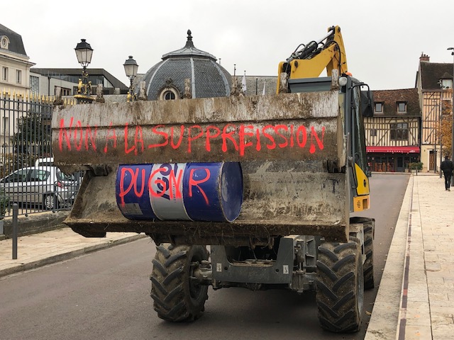 Ensuite, le cortège de camions, d’engins, s’est dirigé vers la Préfecture de l’Aube, à Troyes. Cela a permis aux présidents de la CNATP, Hervé CASAUBON et de la CAPEB, Angelo PAGANESSI, de tenir une conférence de presse afin d’expliquer les raisons de la colère des chefs d’entreprises mobilisés, concernant cette suppression du GNR. Nos représentants ont également pu rencontrer les collaborateurs parlementaires des députés de l’Aube, Madame Valérie BAZIN-MALGRAS, et Monsieur Gérard MENUEL.