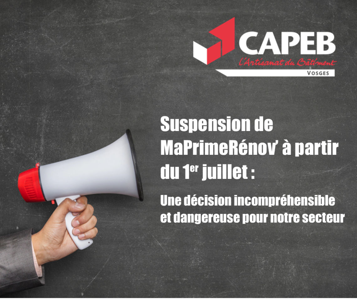La CAPEB condamne fermement cette suspension décidée sans concertation préalable. Cette décision envoie un signal désastreux à un secteur déjà fragilisé par l’instabilité réglementaire et économique.