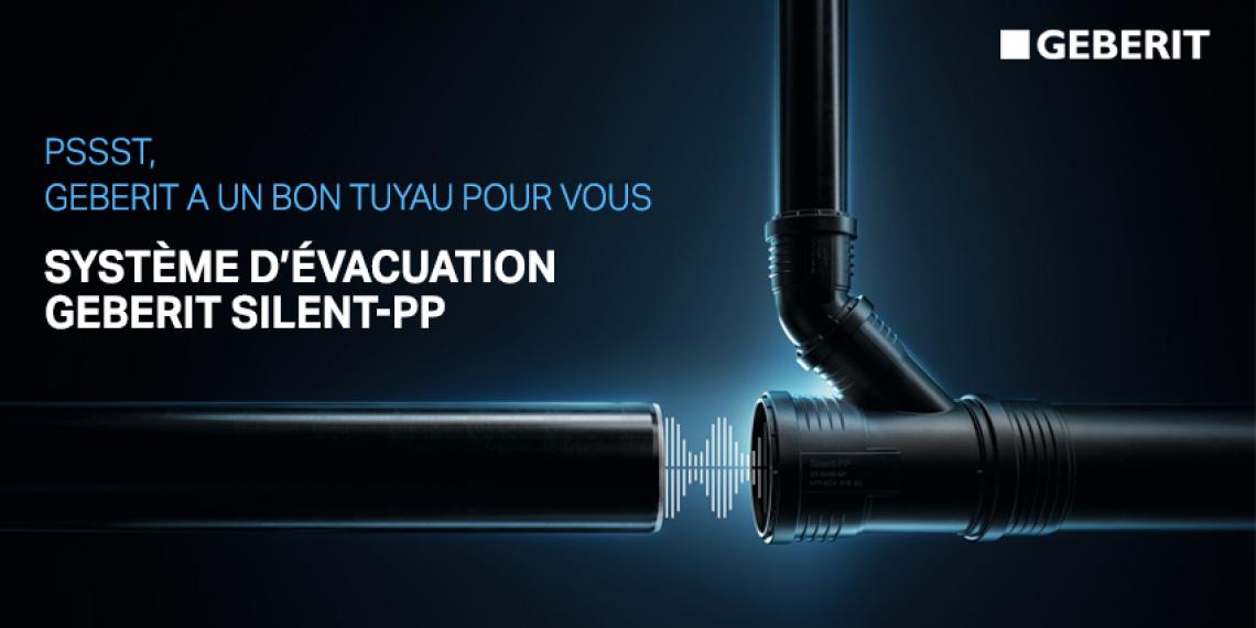 Silent-PP est le système d’évacuation à emboîter optimisé hydrauliquement de Geberit. Un assortiment complet de tubes et de raccords permet un montage rapide, sûr, économique et écologique. La gamme Silent-PP offre un système d’évacuation des eaux usées silencieux dans une gamme de diamètres de : 32, 40, 50, 75, 90, 110, 125 et 160 mm. Silent-PP peut être raccordé de manière sûre et fiable avec Geberit PE et le système d’évacuation Geberit Silent-db20 pour une isolation acoustique accrue. La forme hydraulique des raccords Geberit Silent-PP permet l’utilisation de plus petits diamètres qui sont économiquement plus rentables et permet de réduire l’encombrement et supportent des contraintes de débits supérieurs.