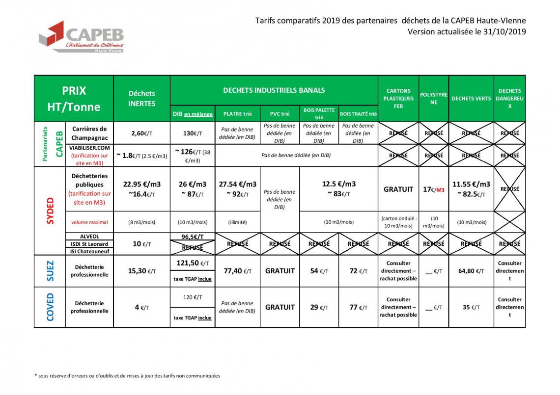 2019-10-06 12:08:23 Tarifs comparatifs déchets du BTP en Haute-Vienne Retrouvez les tarifs des partenaires de la CAPEB Haute-Vienne Tableau en téléchargement