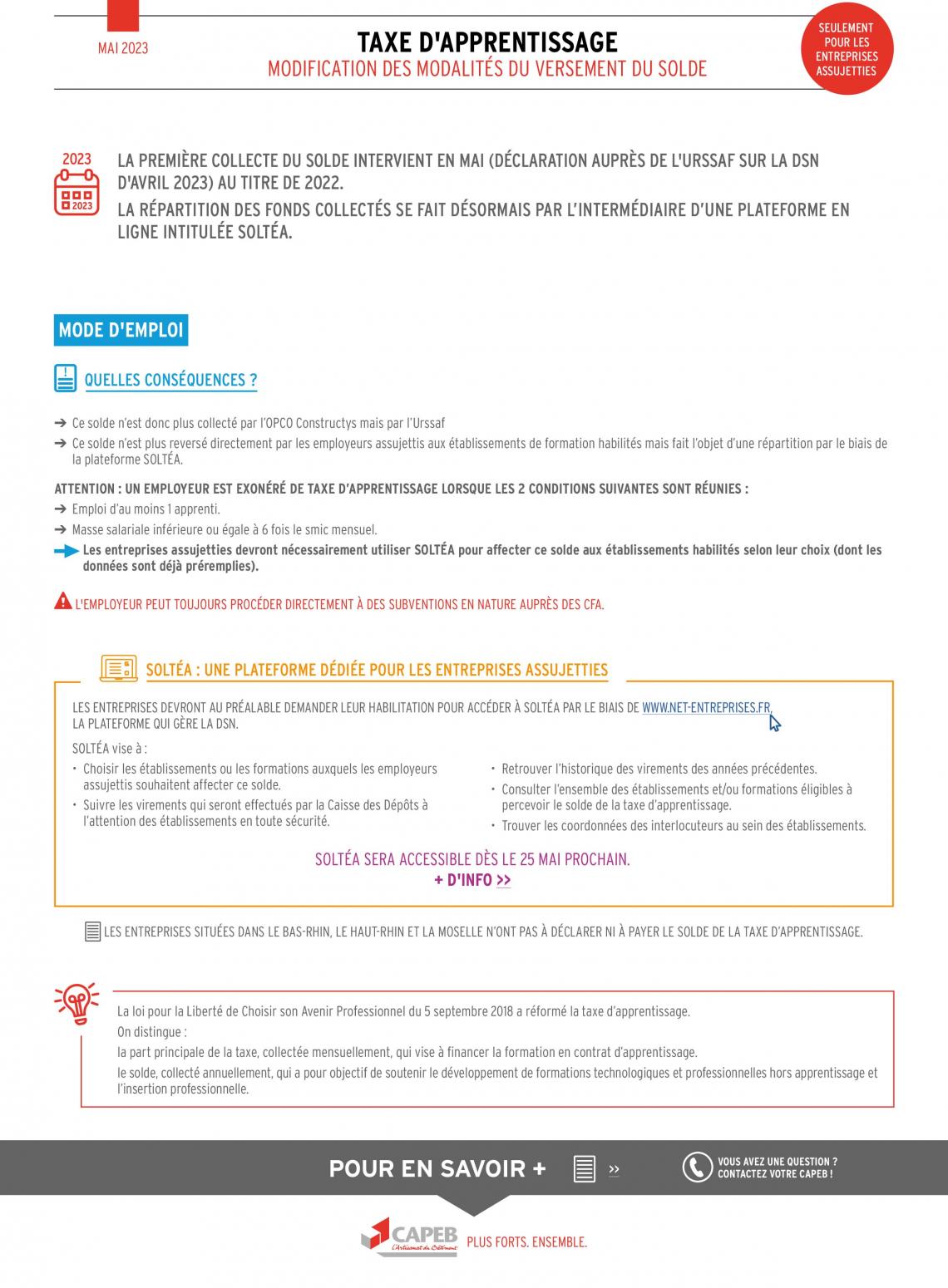 TAXE D'APPRENTISSAGE MODIFICATION DES MODALITÉS DU VERSEMENT DU SOLDE
