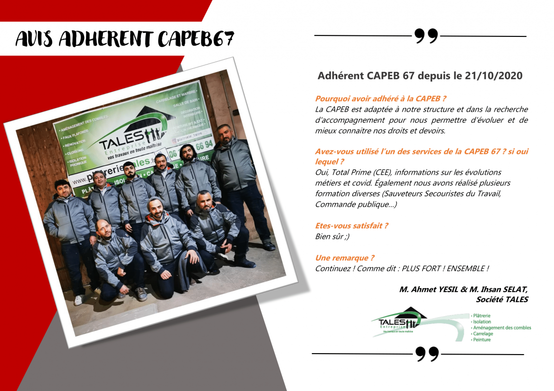 TEMOIGNAGES DES ADHERENTS CAPEB 67