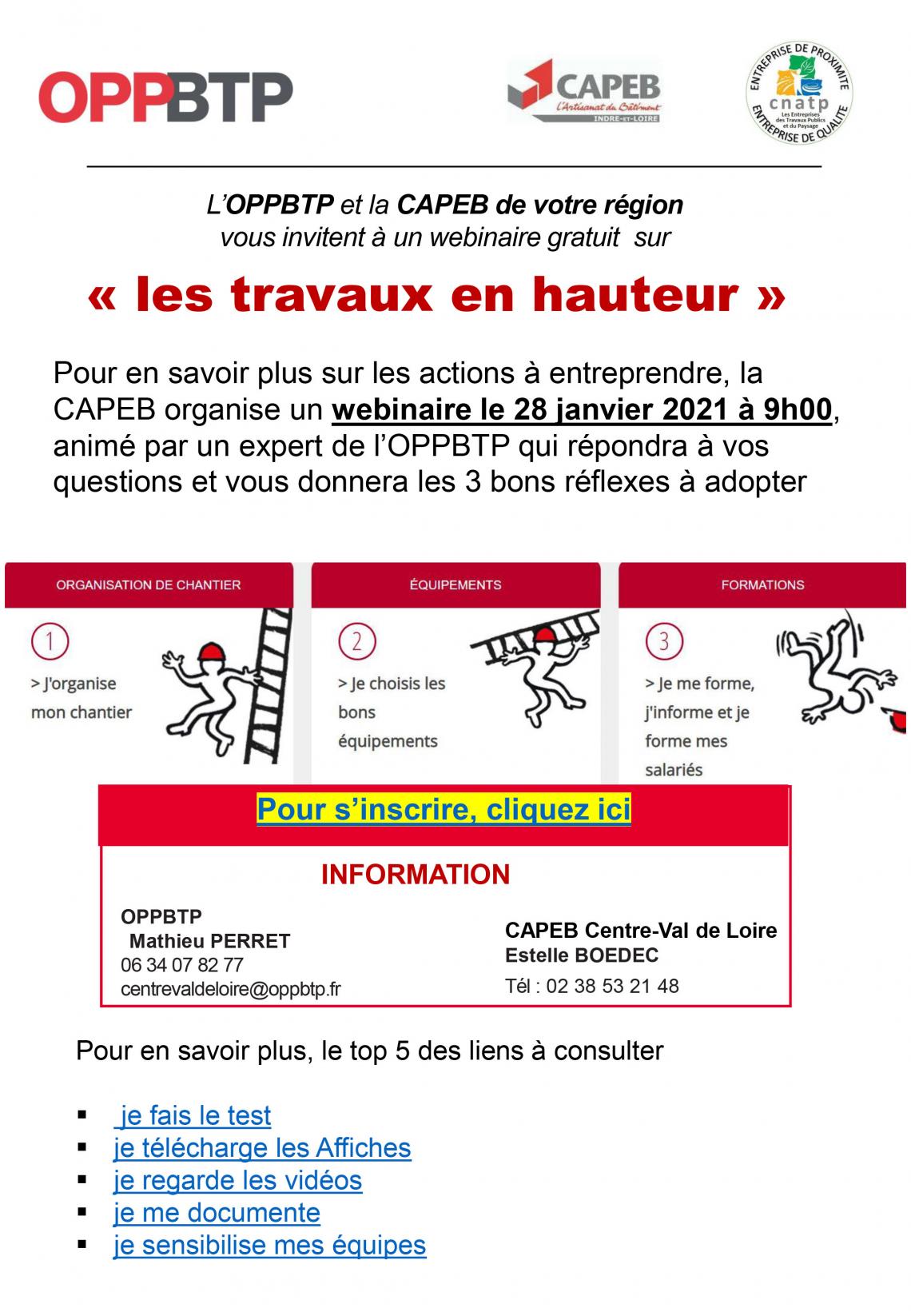 Pour en savoir plus sur les actions à entreprendre, la CAPEB organise un webinaire le 28 janvier 2021 à 9h00, animé par un expert de l’OPPBTP qui répondra à vos questions et vous donnera les 3 bons réflexes à adopter