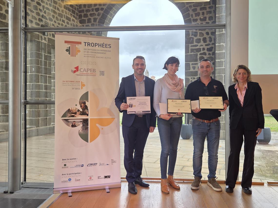 Vendredi 24 octobre 2025 –C’est à l’hôtel du département de la Haute-Loire, au Puy-en-Velay, que la CAPEB Auvergne-Rhône-Alpes a remis cette année, ses traditionnels Trophées des artisans du Patrimoine et de l’Environnement. 10 entreprises artisanales ont été récompensées pour leur savoir-faire, leur talent et leur passion partagée, en matière de restauration, rénovation des bâtiments anciens et de respect de l’environnement !