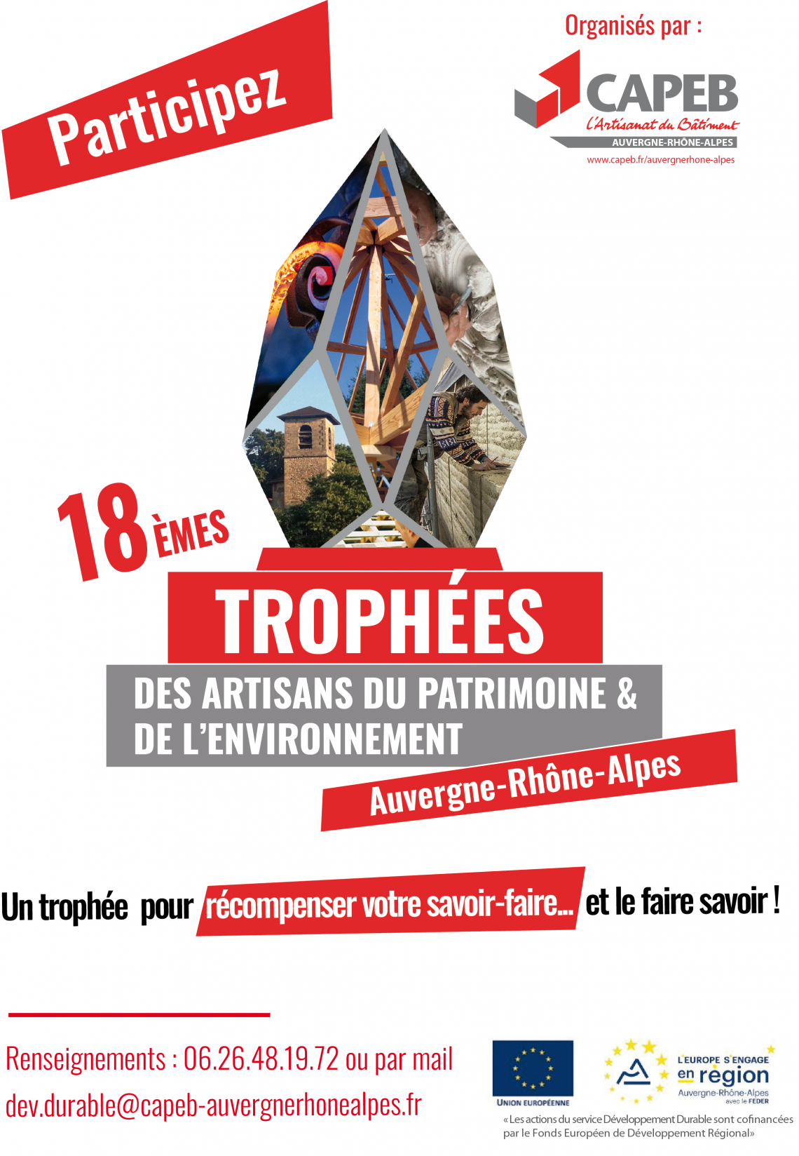 Vous êtes intervenu(e), ne serait-ce qu’une fois, non pas forcément sur du bâtiment inscrit ou classé, mais aussi sur du petit patrimoine de notre région (maison de village, corps de ferme, etc.). Alors les Trophées sont faits pour vous !