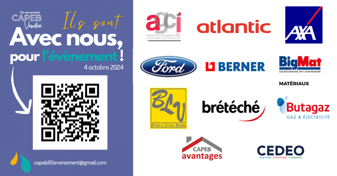 70 ans CAPEB Vendée - Un immense MERCI à nos précieux sponsors pour leur soutien inestimable !