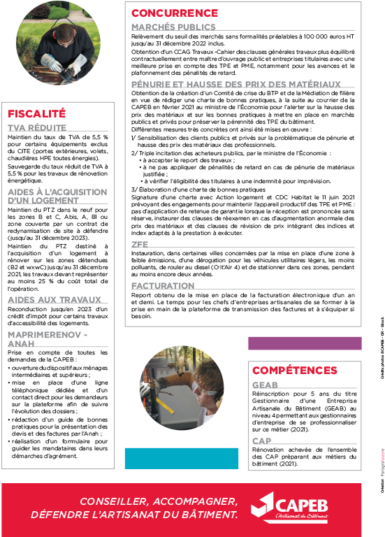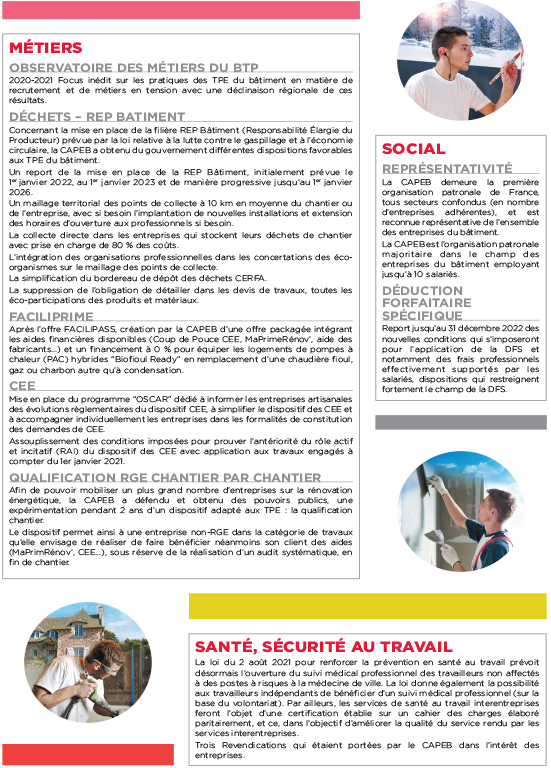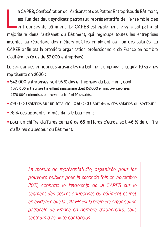 Votre CAPEB vous la connaissez à travers l'ensemble des services qu'elle apporte aux entreprises artisanales du bâtiment. Mais votre CAPEB c'est aussi un ensemble d'action menées sur le long terme pour toujours améliorer le quotidien de toutes les entreprises du bâtiment.