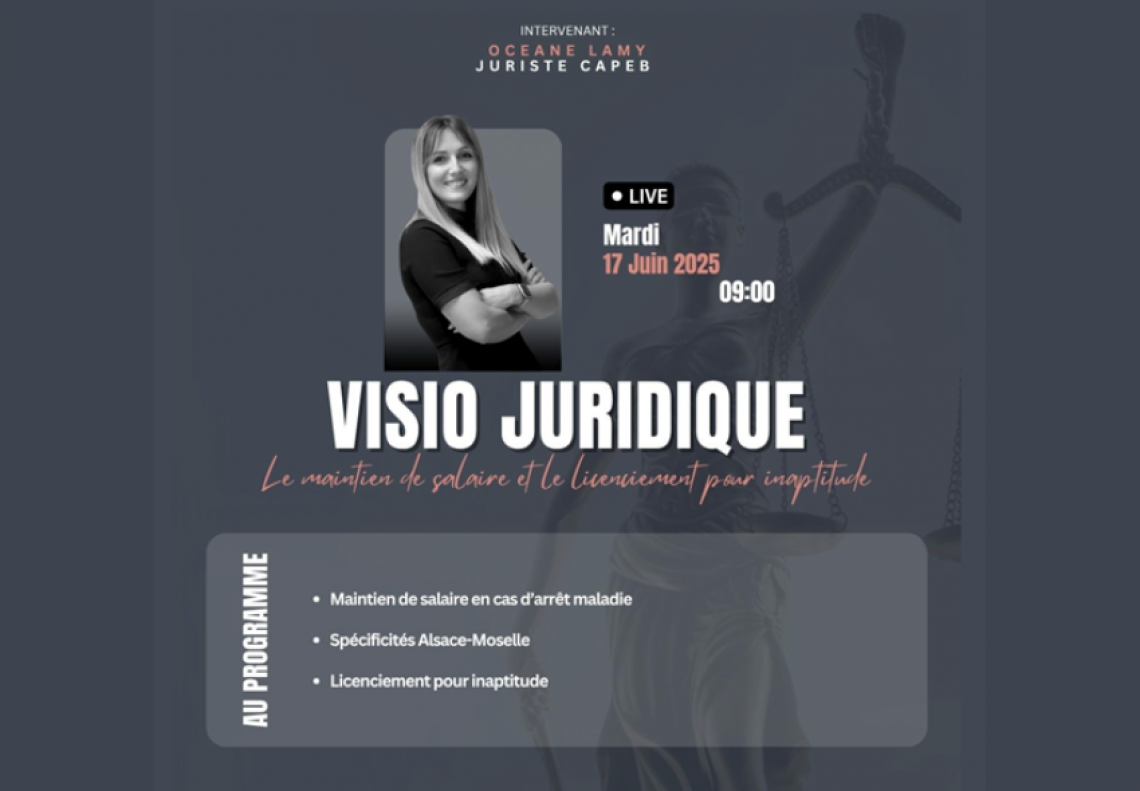 Participez à une visioconférence sur le thème du maintien de salaire et du licenciement pour inaptitude le Mardi 17 Juin 2025 à 9h00.