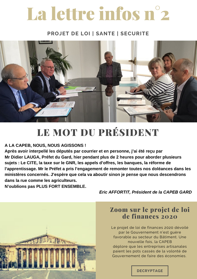 Afin de faciliter la communication entre les entreprises artisanales et la CAPEB du Gard, nous avons mis une lettre d'informations envoyée par mail.