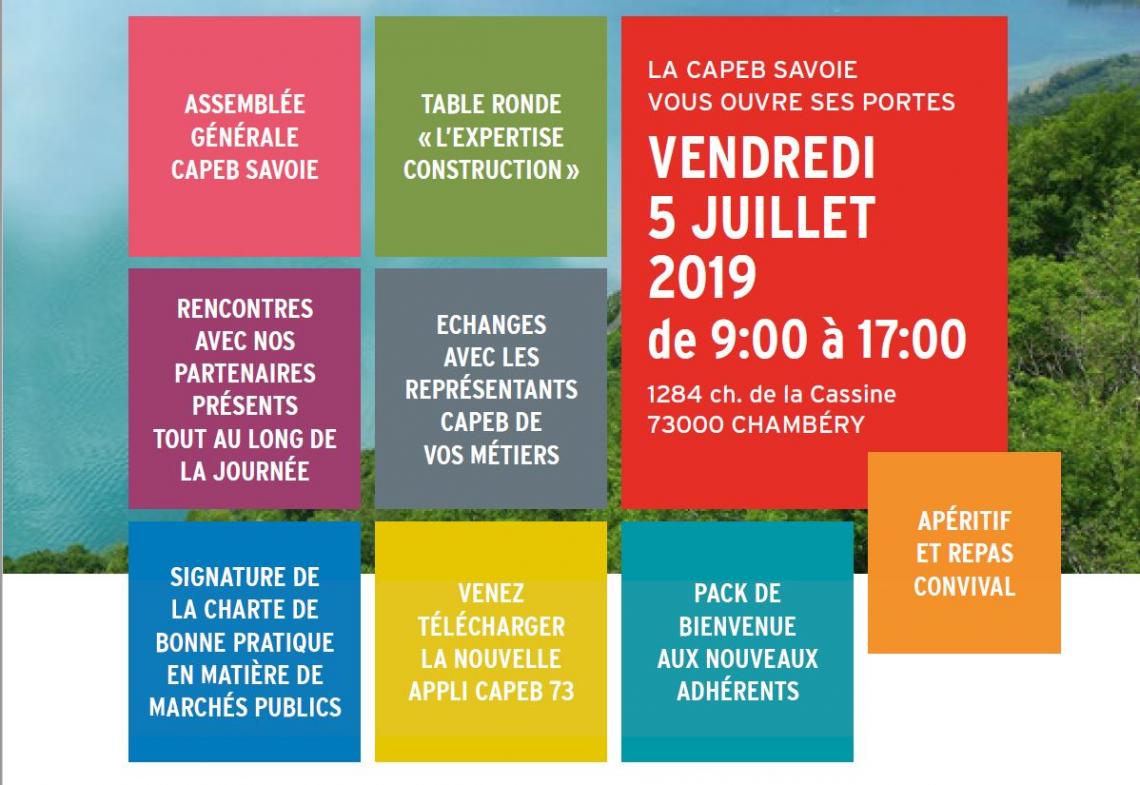 Vendredi 5 Juillet 2019 de 9h00 à 17h00à la CAPEB Savoie 1284 chemin de la Cassine - 73000 CHAMBERY