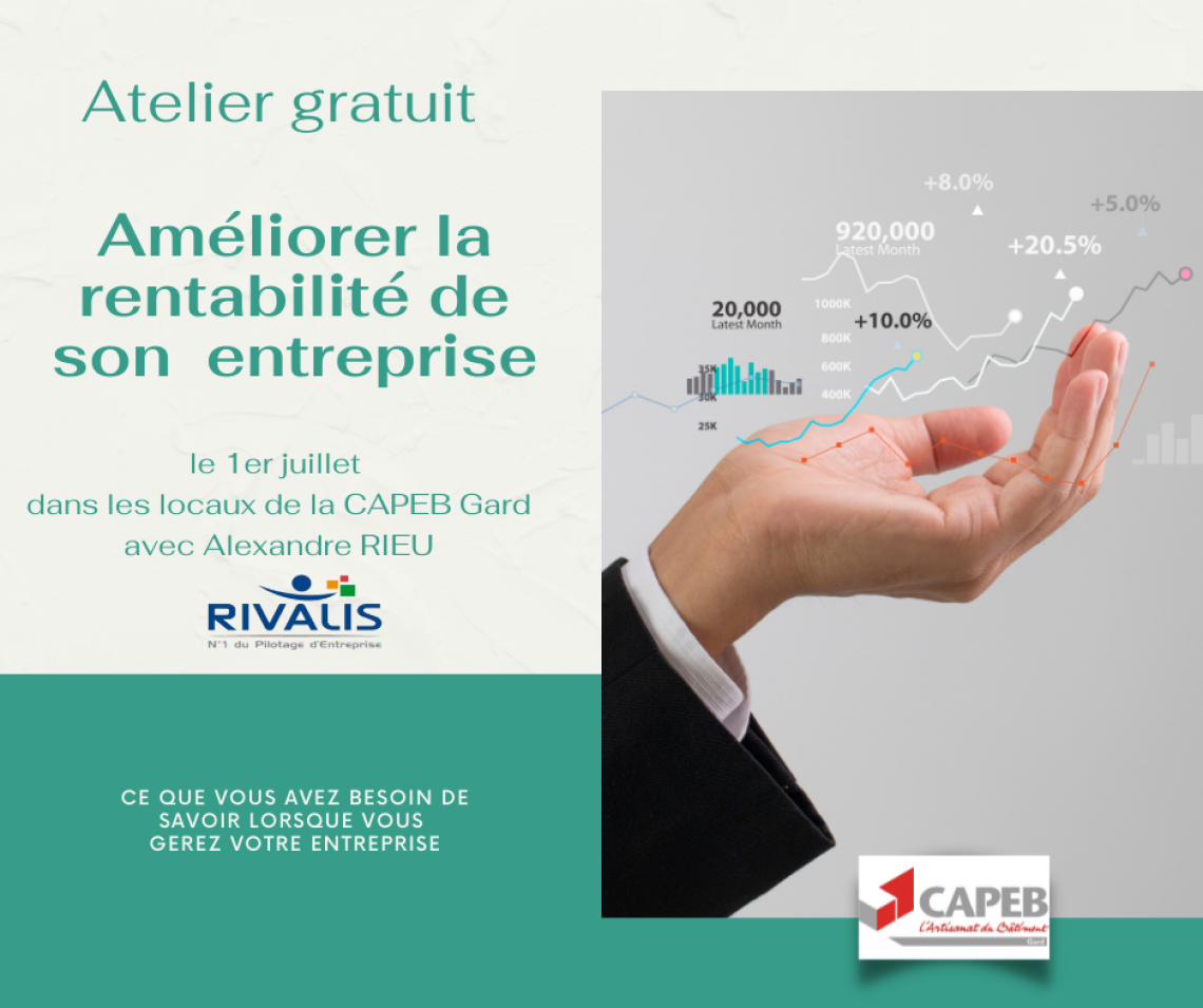 Alexandre RIEU - Rivalis, vous donne rendez-vous pour cet atelier gratuit le vendredi 1er juillet à 9h dans les locaux de la CAPEB Gard.