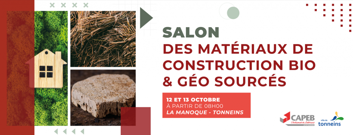 SALON MATÉRIAUX BIO & GÉO SOURCÉS Salon des matériaux bio et géo sourcés - Eaux pluviales & énergies renouvelables - Complexe de la Manoque à Tonneins