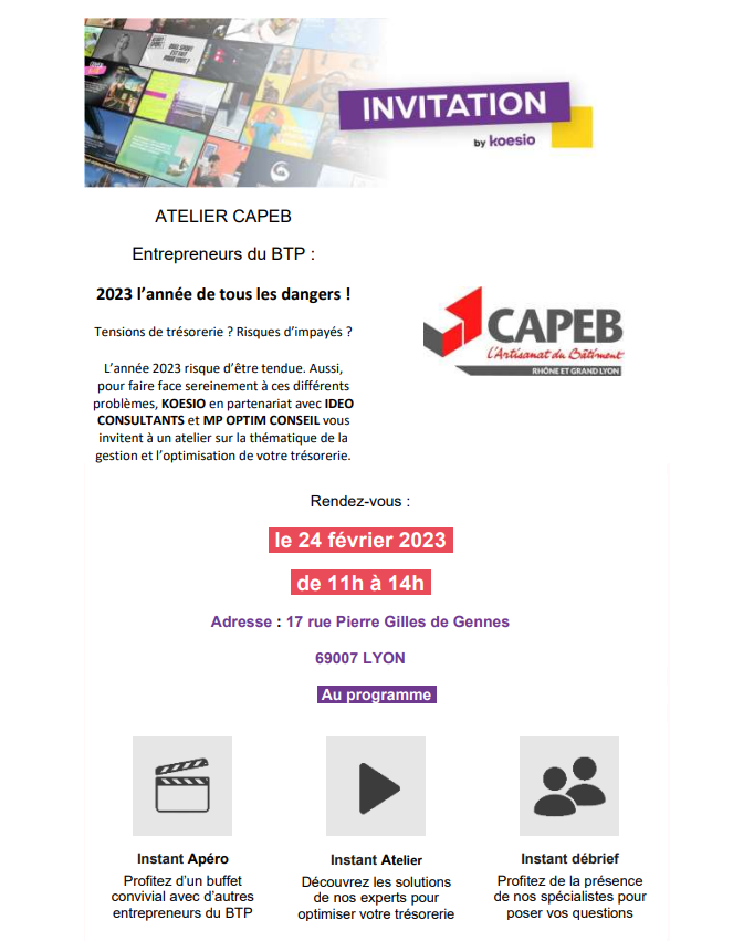 Atelier CAPEB : invitation KOESIO Vous souhaitez vous inscrire ? Contactez : vincent.hardy@koesio.com