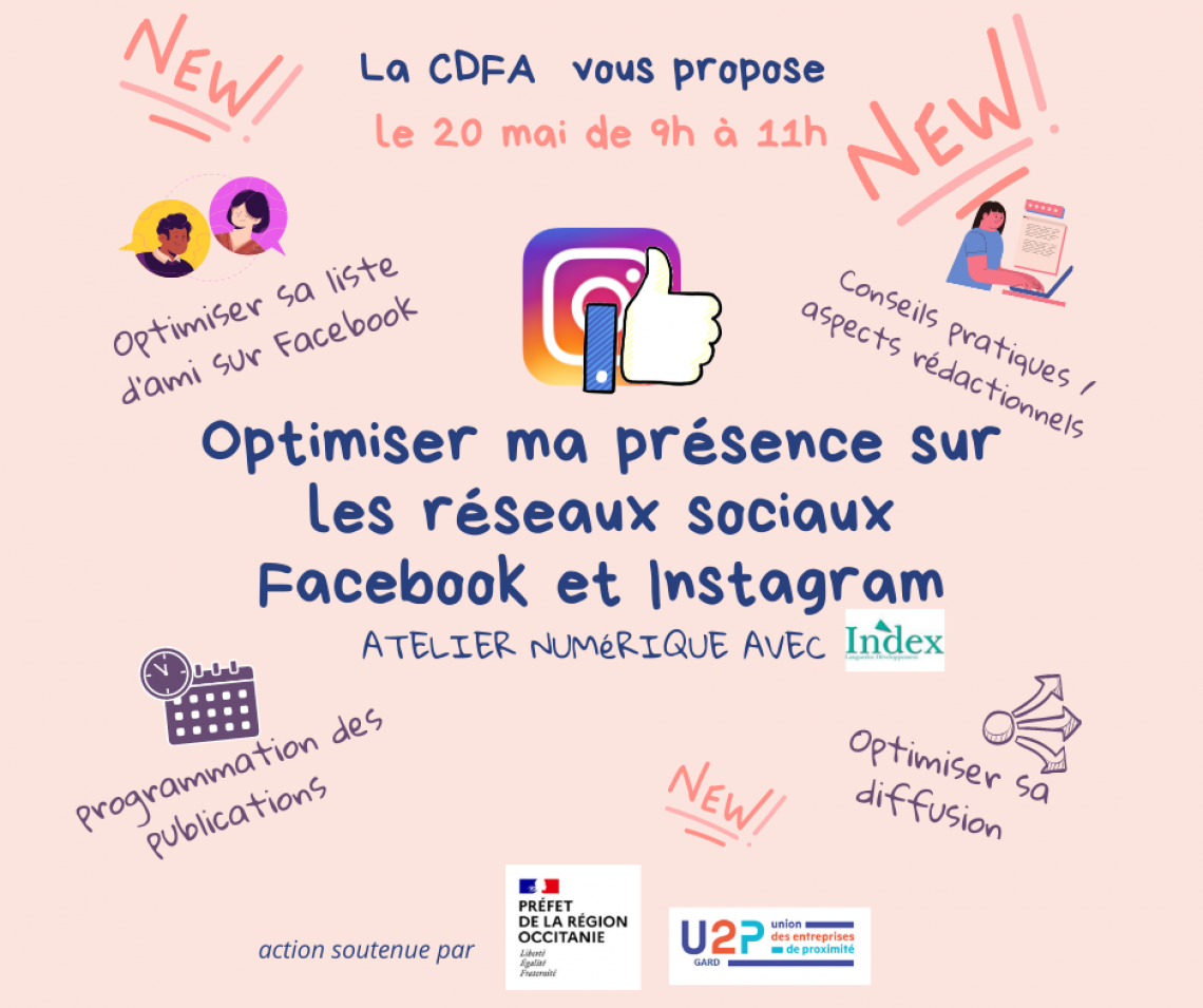 Adressé aux entreprises ayant déjà une activité sur les réseaux et souhaitant l'optimiser, la CDFA vous donne rendez-vous le 20 mai de 9h à 11h pour entre autres :