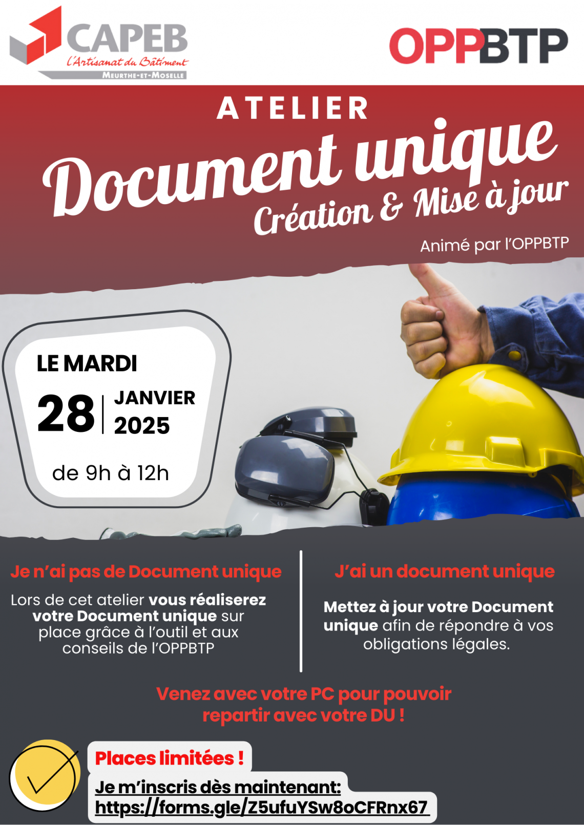 Rendez-vous à la CAPEB-54 Mardi 28 Janvier de 9h00 à 12h00 pour notre atelier animé par l'OPPBTP !