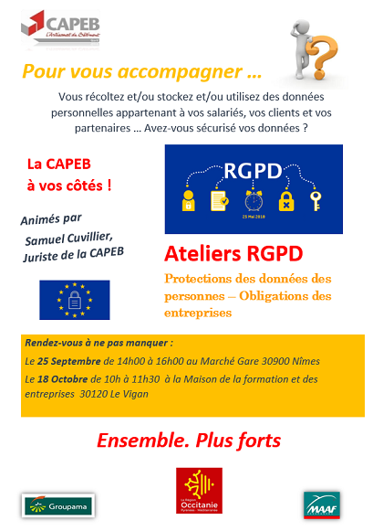 Vous récoltez et/ou stockez et/ou utilisez des données personnelles appartenant à vos salariés, vos clients et vos partenaires … Avez-vous sécurisé vos données ? Samuel CUVILLIER, notre juriste CAPEB vous propose un atelier pour vous accompagner.