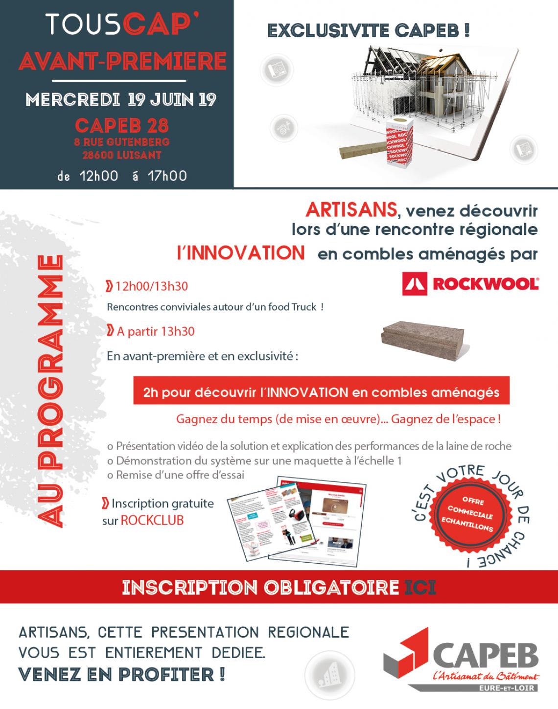 Avant-Première Rockwool Un atelier de présentation du nouvel isolant de combles aménagés de Rockwool Inscription : ici