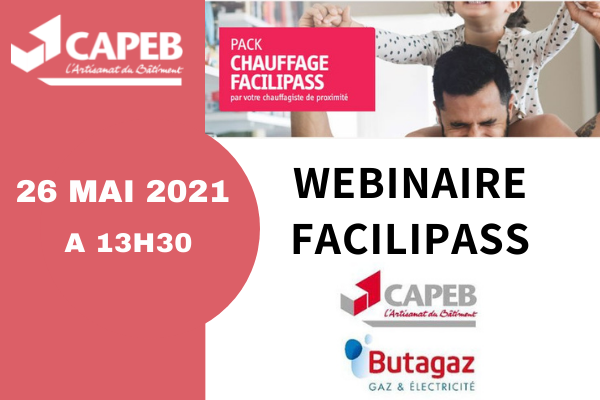 Afin de pouvoir informer les entreprises artisanales du bâtiment sur les dernières évolutions de l’offre Facilipass, la CAPEB et son partenaire BUTAGAZ vous propose un webinaire de présentation du pack chauffage Facilipass.