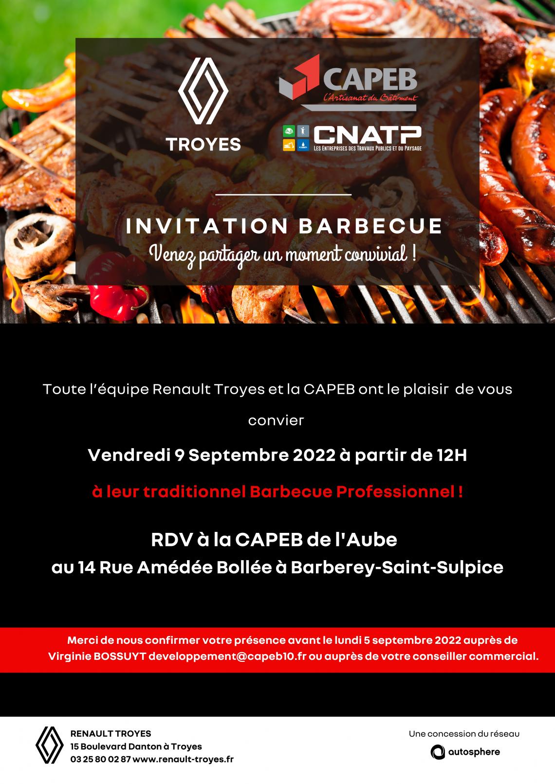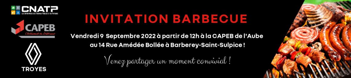 Venez partager un moment convivial autour du barbecue de rentrée qui se déroulera le vendredi 9 septembre 2022, dès 12h00 dans les locaux de la CAPEB & CNATP de l'Aube.