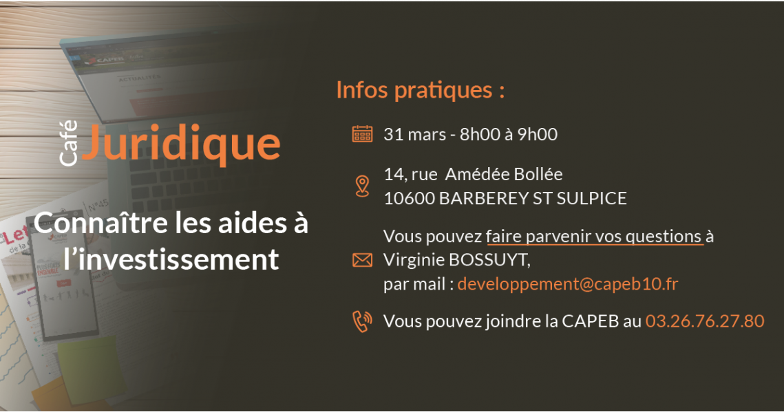 Afin de pouvoir comptabiliser le nombre de présents et ainsi de justifier du maintien ou pas de cette manifestation, nous vous demandons de manifester impérativement votre participation par une inscription préalable, auprès de juridique@capeb10.fr ou accueil@capeb10.fr