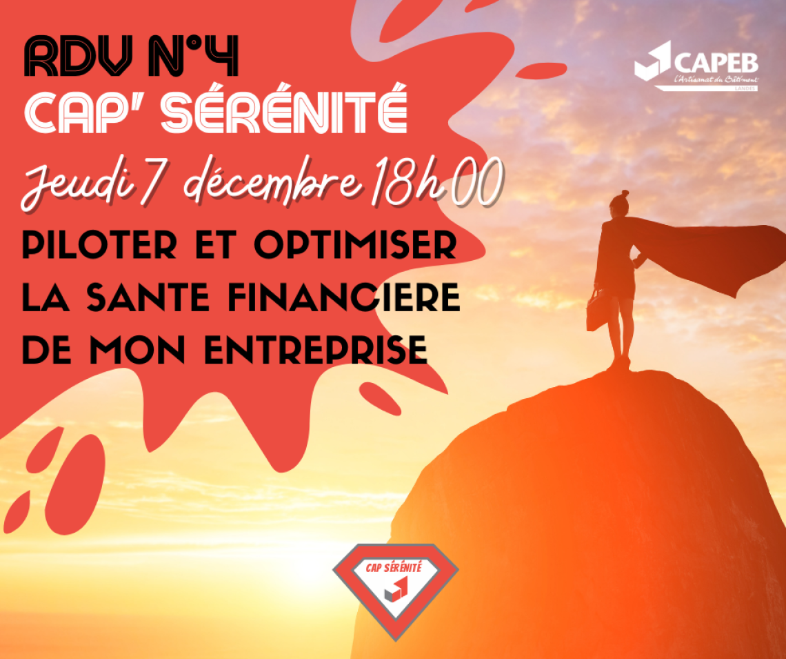 Pour rappel, CAP Sérénité a été créé l'année dernière pour les adhérents de la CAPEB Landes, car nous sommes confrontés à des dirigeants lassés, en perte de vitesse, seuls face à des problématiques diverses (gestion admin, stress, organisation ...)