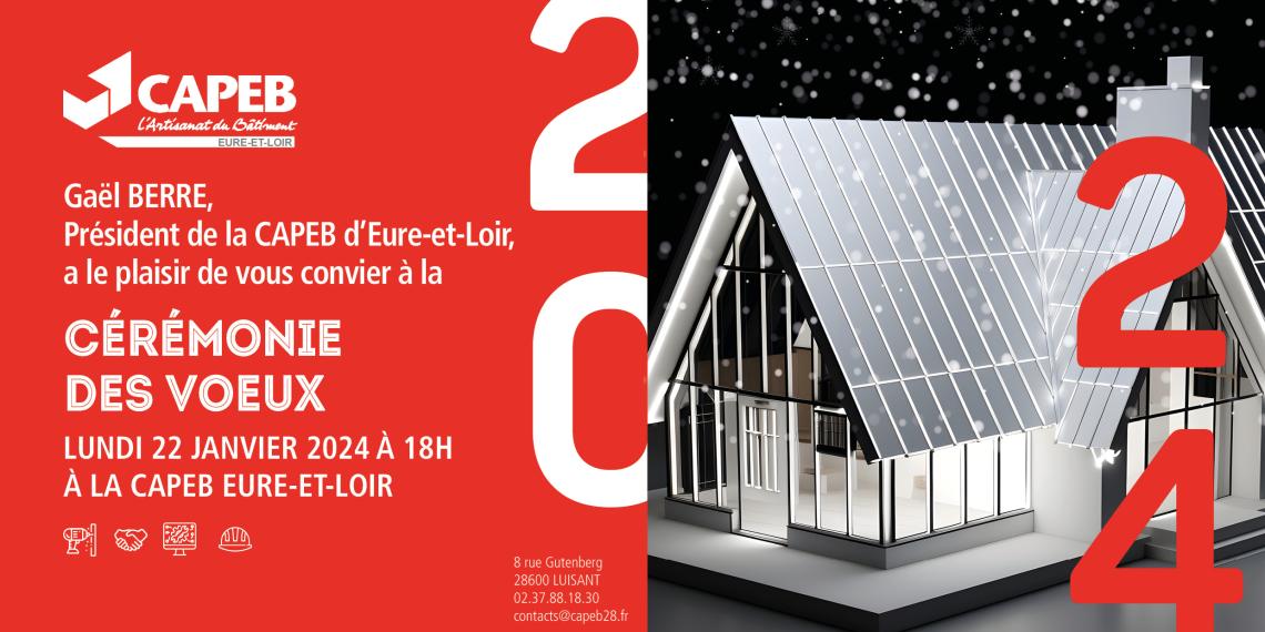 Gaël BERRE, Président de la CAPEB d''Eure-et-Loire, à le plaisir de vous convier à la cérémonie des voeux :